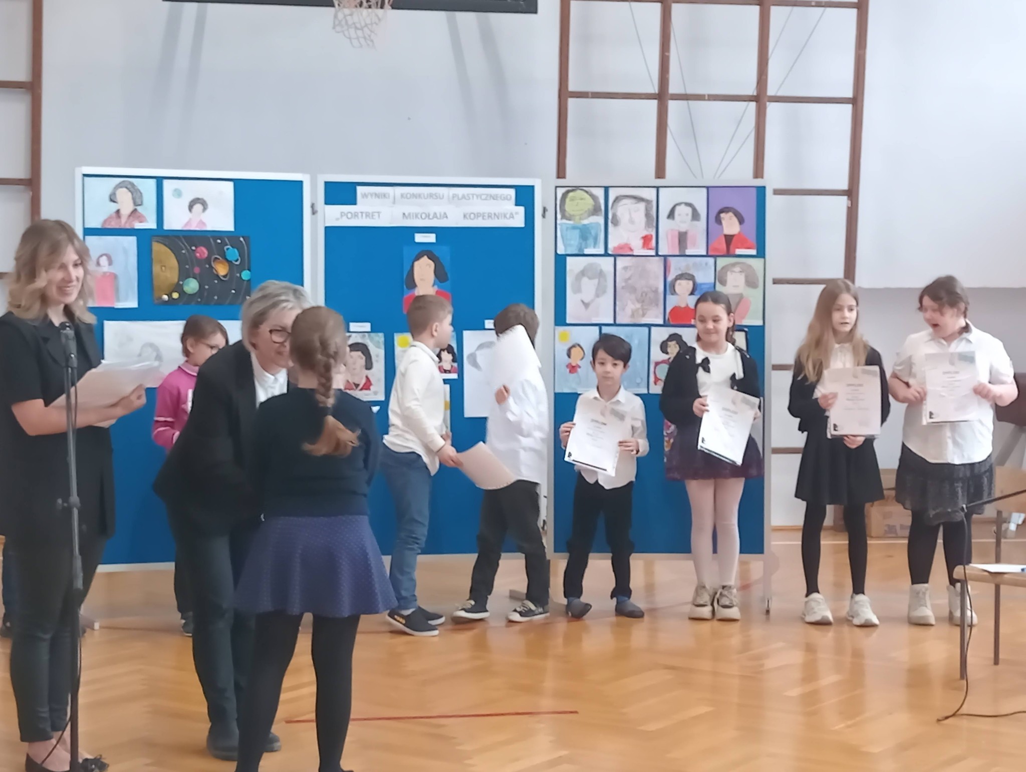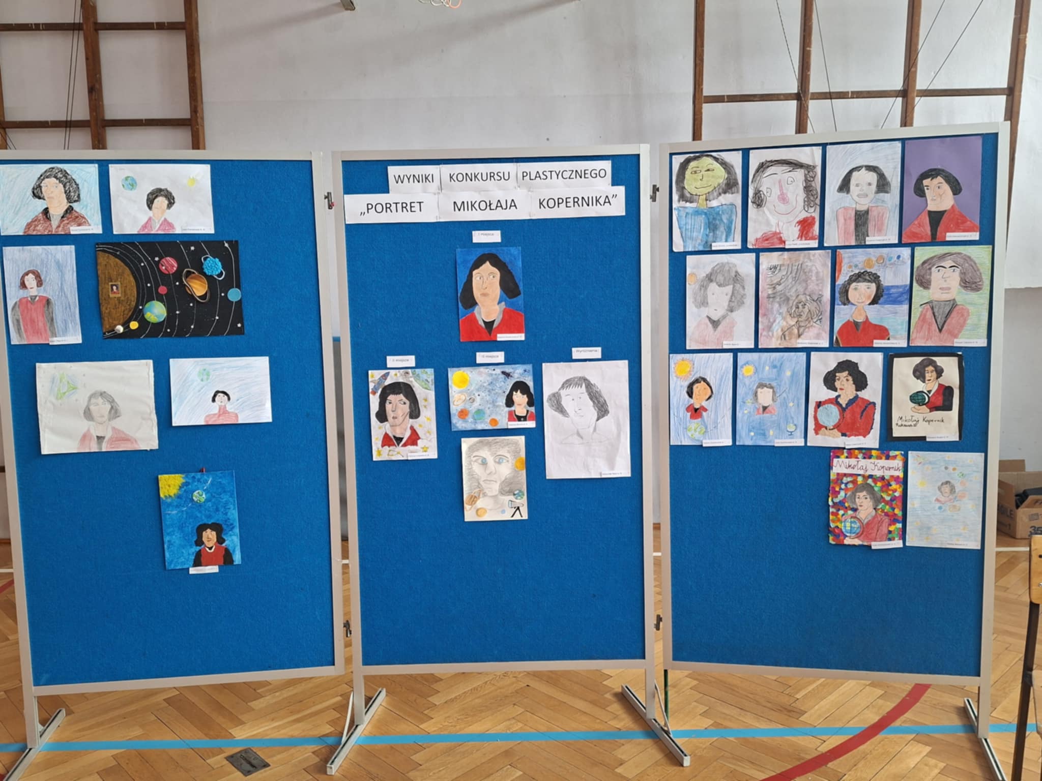 Podczas uroczystości rozstrzygnięto również konkurs plastyczny „Portret Mikołaja Kopernika”. Uczniowie wykazali się niezwykłą kreatywnością i wrażliwością artystyczną. Powstały prace różnorodne, barwne i pełne wyobraźni, pokazujące, jak inspirującą postacią jest nasz patron.