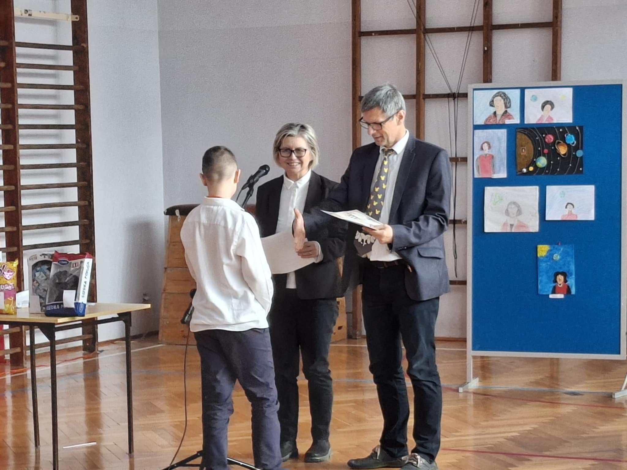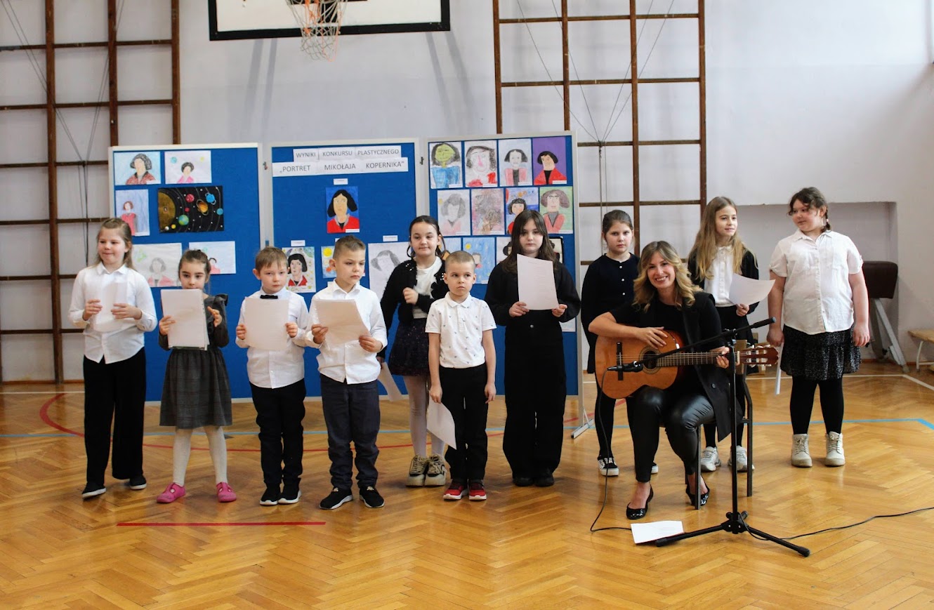 Uroczystości rozpoczęły się konkursem wiedzy o Koperniku. Uczniowie z ogromnym zaangażowaniem odpowiadali na pytania dotyczące życia i dokonań słynnego astronoma. Nie zabrakło emocji, zdrowej rywalizacji i prawdziwej dumy z posiadanej wiedzy. Starsze klasy układały portret patrona, projektowały banknot z wizerunkiem astronoma i uzupełniały tekst dotyczący biografii.