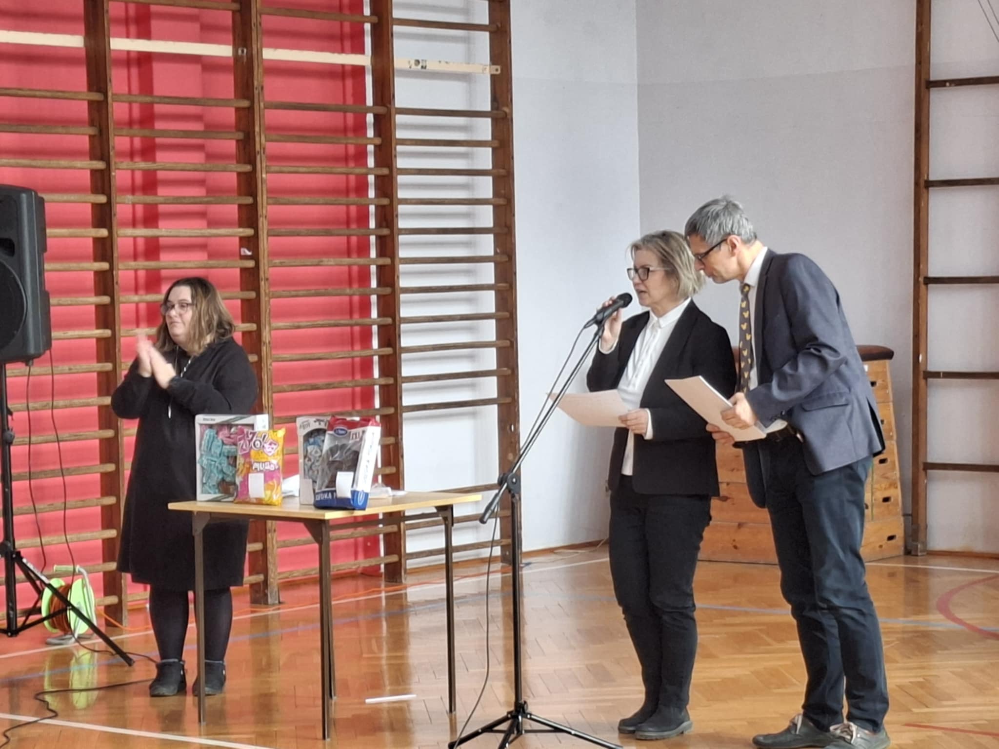 Szczególnym i historycznym momentem było wspólne, pierwsze wykonanie hymnu szkoły „Piosenka o Koperniku”. Wszyscy – uczniowie, nauczyciele i pracownicy szkoły – zaśpiewali jednym głosem, tworząc atmosferę jedności i wspólnoty. Była to chwila, która z pewnością na długo pozostanie w naszej pamięci.