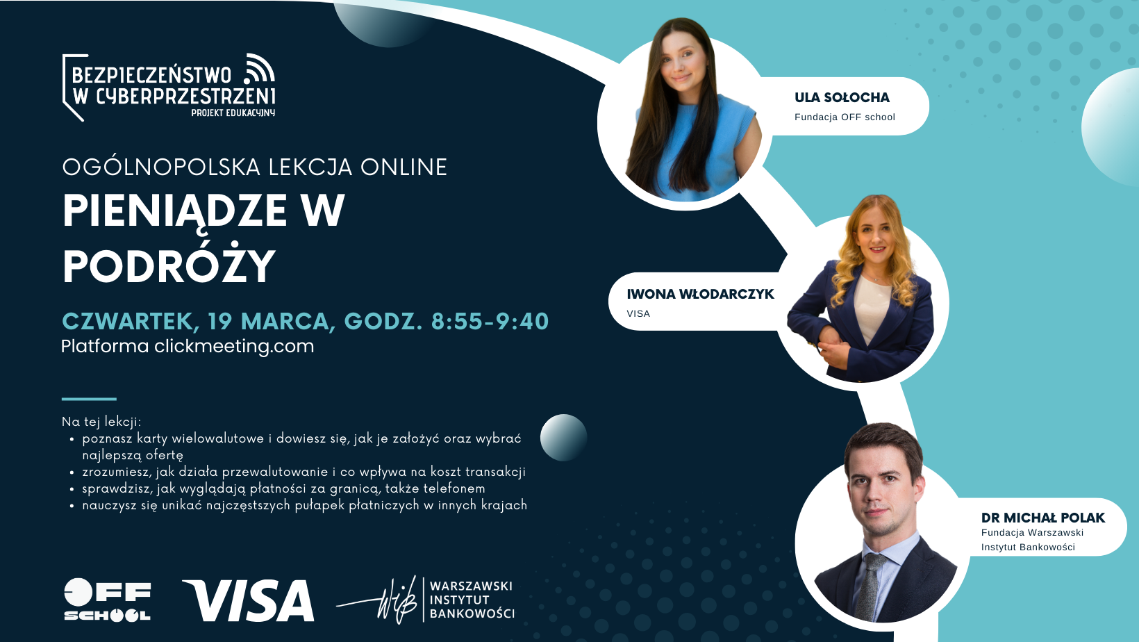 Drugiego dnia wysłuchali równie ciekawego wykładu pt. : „Pieniądze w podróży”. To była bardzo cenna i praktyczna lekcja, podczas której dowiedzieli się, czym są karty walutowe i jak je założyć, zrozumieli, na czym polega proces przewalutowania i jak działają płatności za granicą.