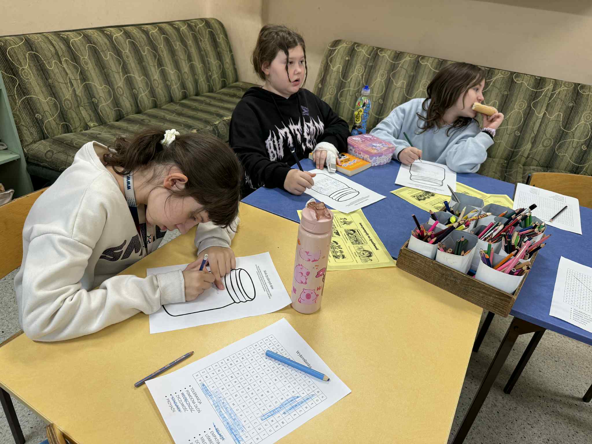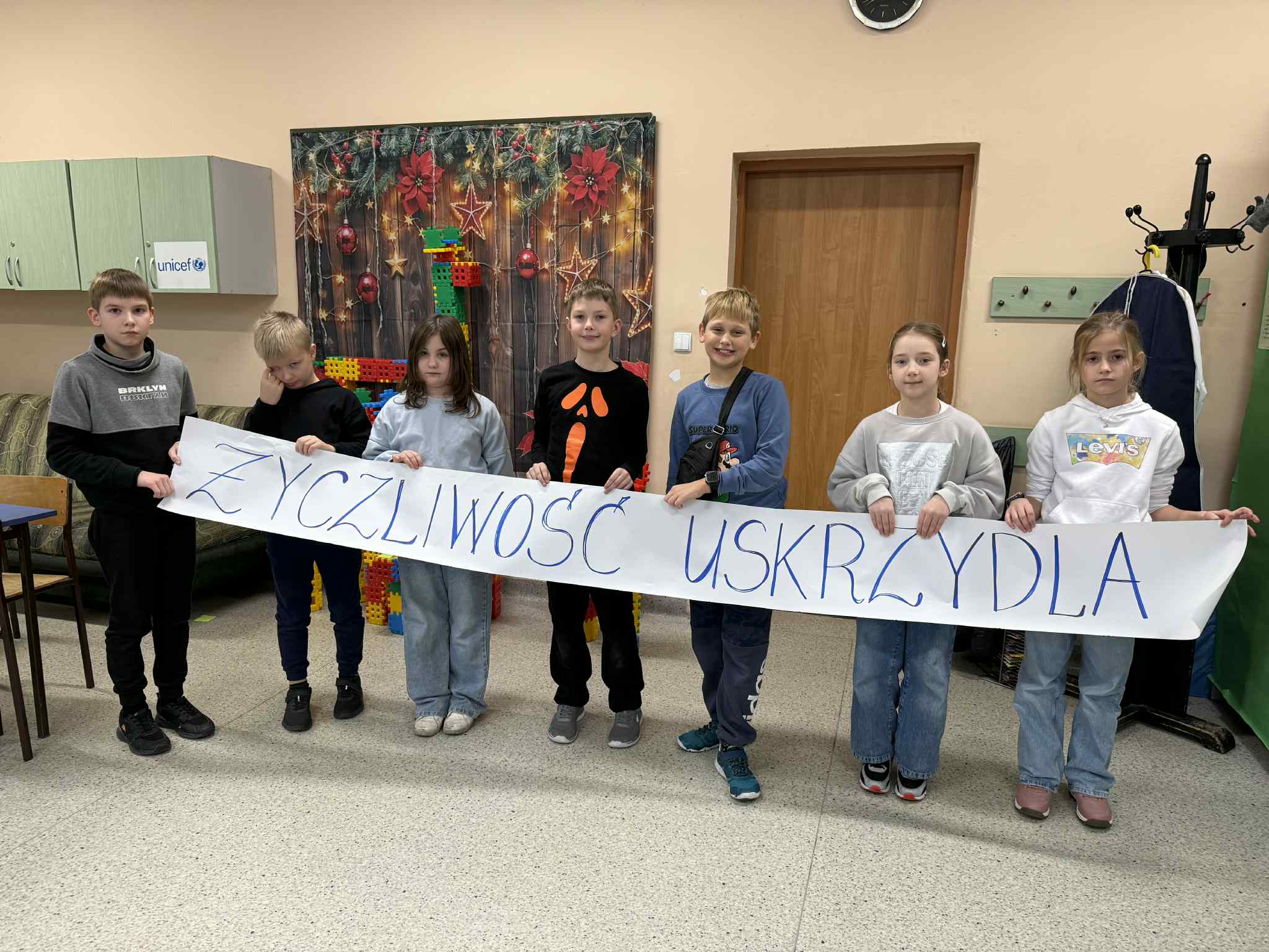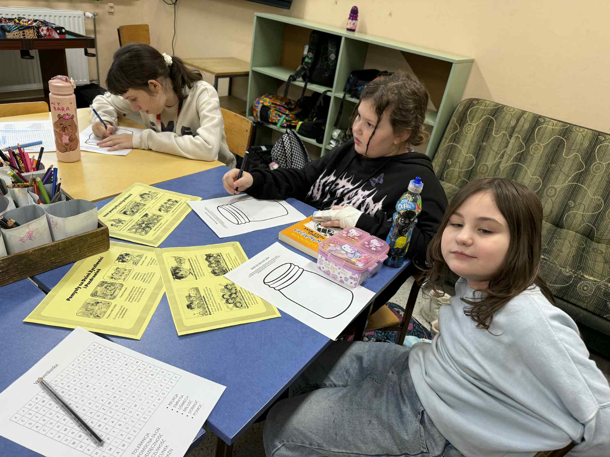 W świetlicy obchodziliśmy Dzień Życzliwości. Dzieci z zainteresowaniem poznały historię tego pięknego święta, a następnie wspólnie stworzyliśmy Słoik Życzliwych Słów. Każdy mógł wrzucić do niego własną, miłą wiadomość – dzieci z radością pisały słowa, które mogą sprawić innym przyjemność. Nie zabrakło też zabawy – przygotowana wykreślanka z życzliwymi słowami okazała się świetnym wyzwaniem, z którym wszyscy poradzili sobie znakomicie. Na koniec wspólnie doszliśmy do wniosku, że życzliwość naprawdę ma moc i potrafi pozytywnie wpłynąć na drugiego człowieka. To był wyjątkowy, pełen ciepła dzień.