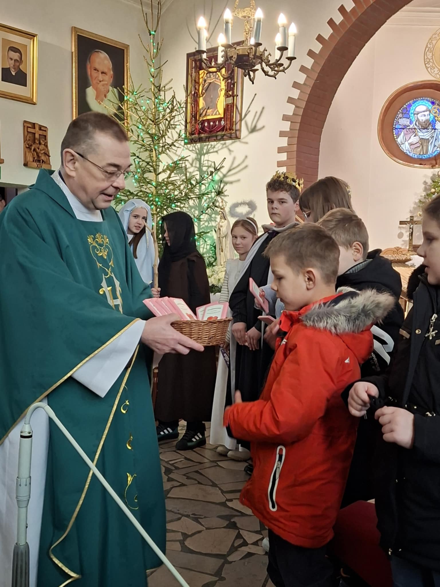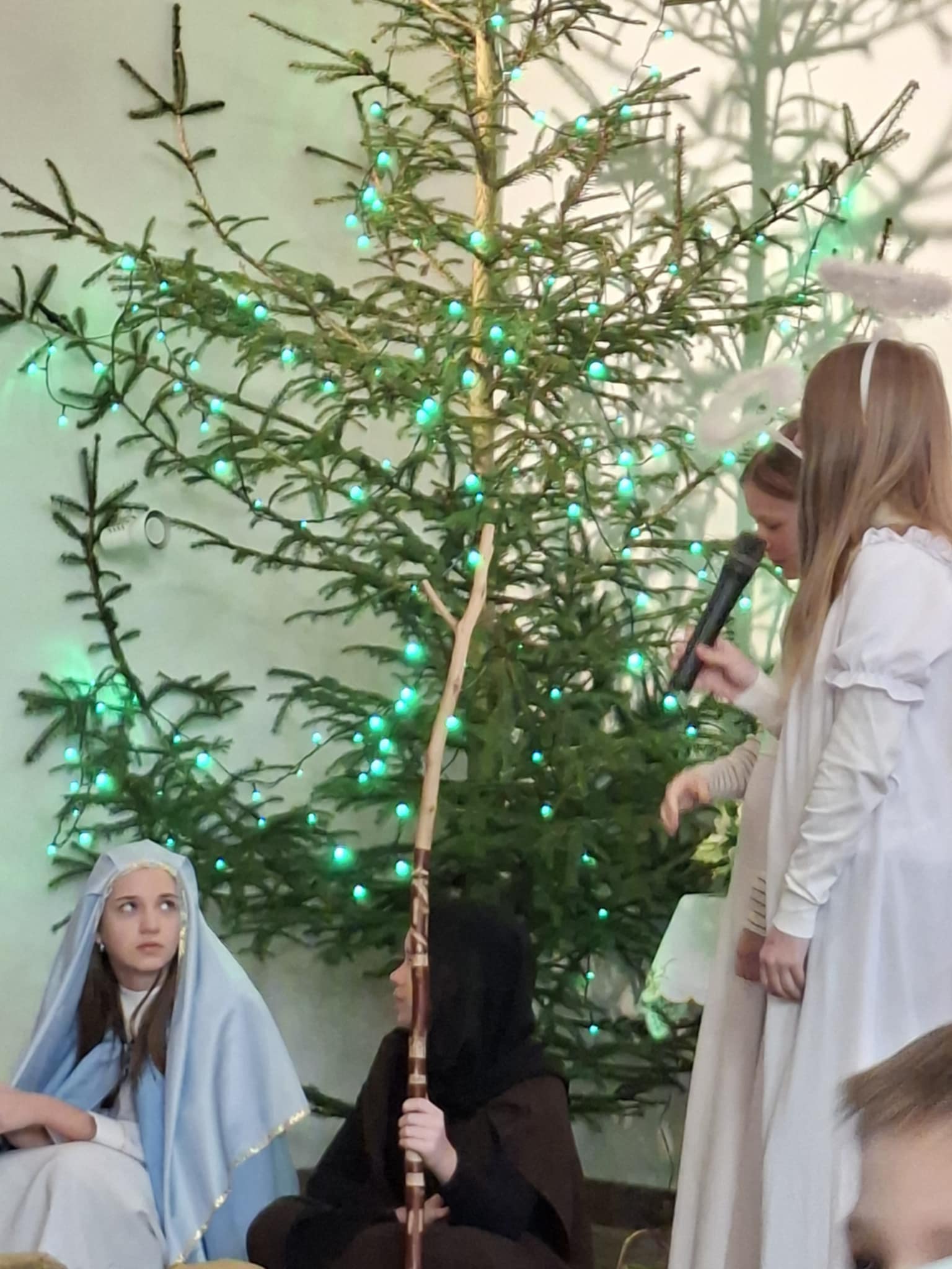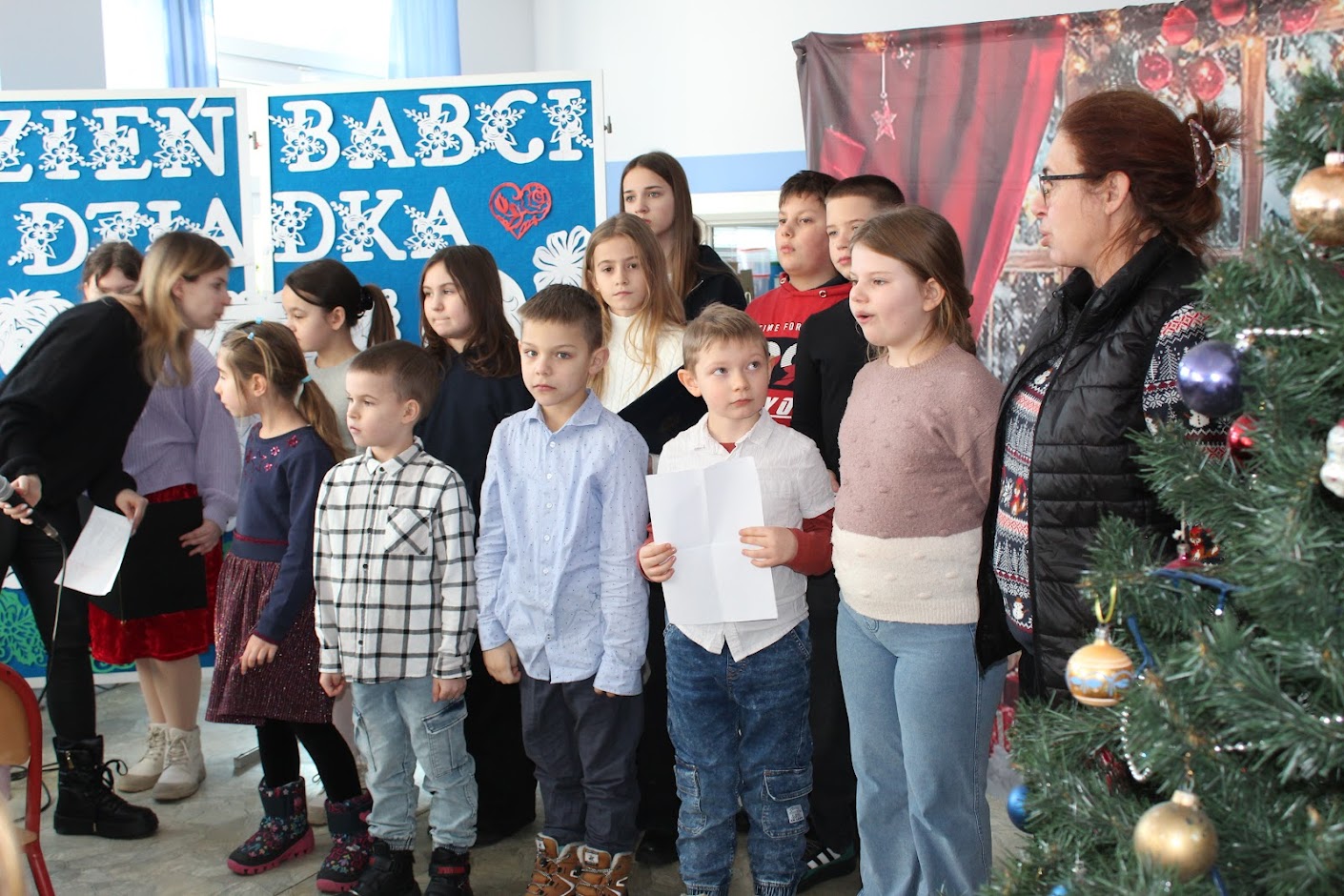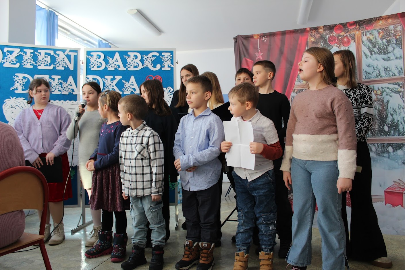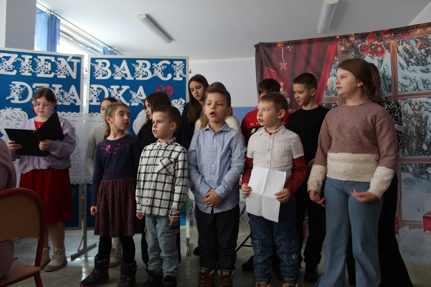 Niedzielny poranek 18 stycznia część uczniów naszej szkoły nie spędziła w domowych pieleszach. Mimo doskwierającego mrozu przyszli do kościoła, aby parafianom zaprezentować jasełka, a potem z Rodzicami, Babciami i Dziadkami udali się do szkoły, by tam świętować zbliżąjące się Ich święto oeraz wspólnie pośpiewać ulubione kolędy.
