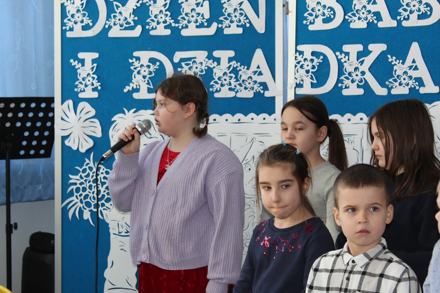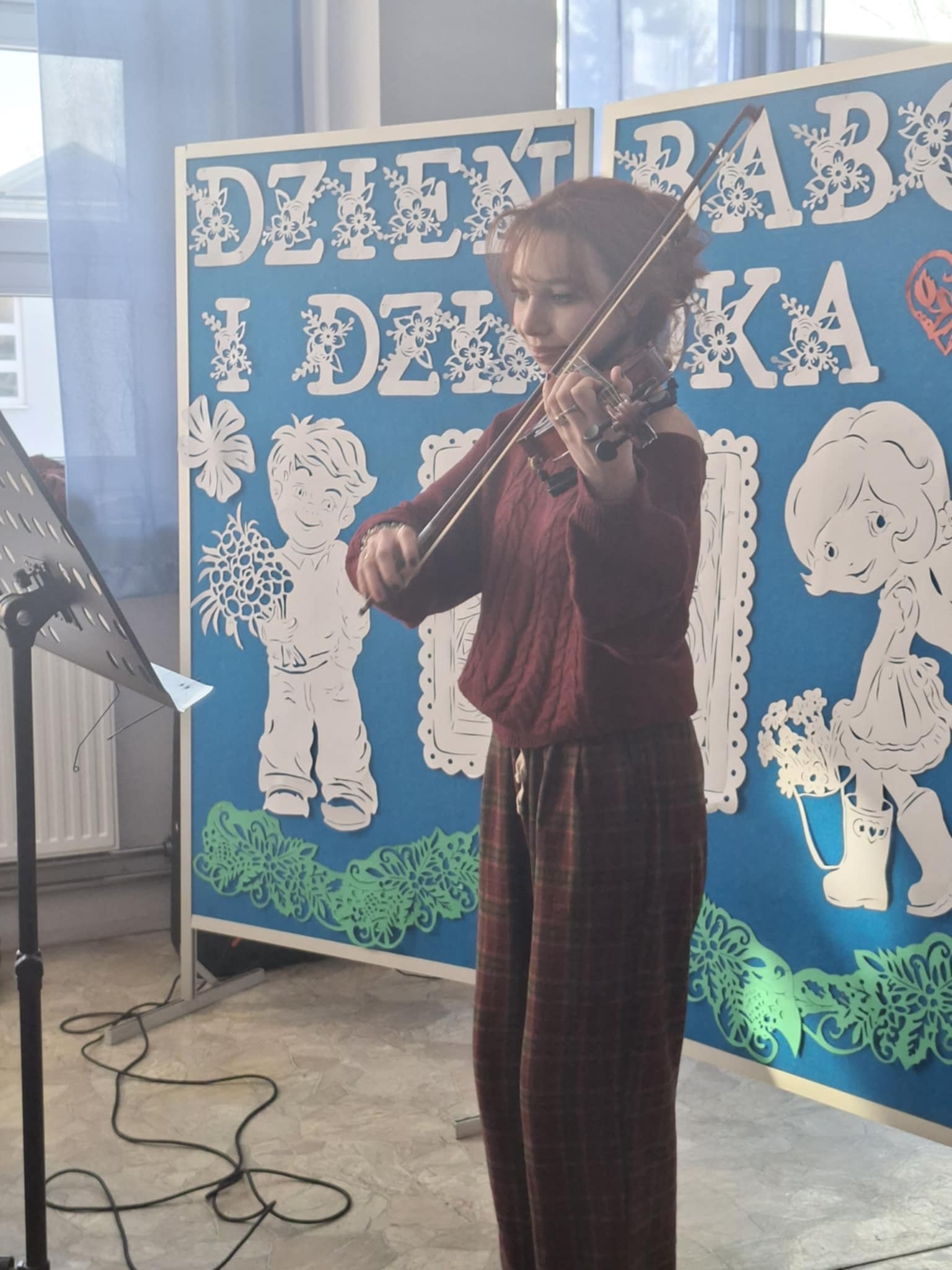 Nasze zaproszenie przyjęła także absolwentka szkoły - Joanna Joppek, która dała przepiękny koncert na skrzypcach. Zespół muzyczny pod kierunkiem pani Agnieszki Kartaszewicz skradł serca nie tylko naszym Gościom, ale także Księdzu Proboszczowi, a wiersze i słowa wdzięczności, miłości wypowiedziane przez dzieci wobec Babć i Dziadków wywołały łzy wzruszenia.
