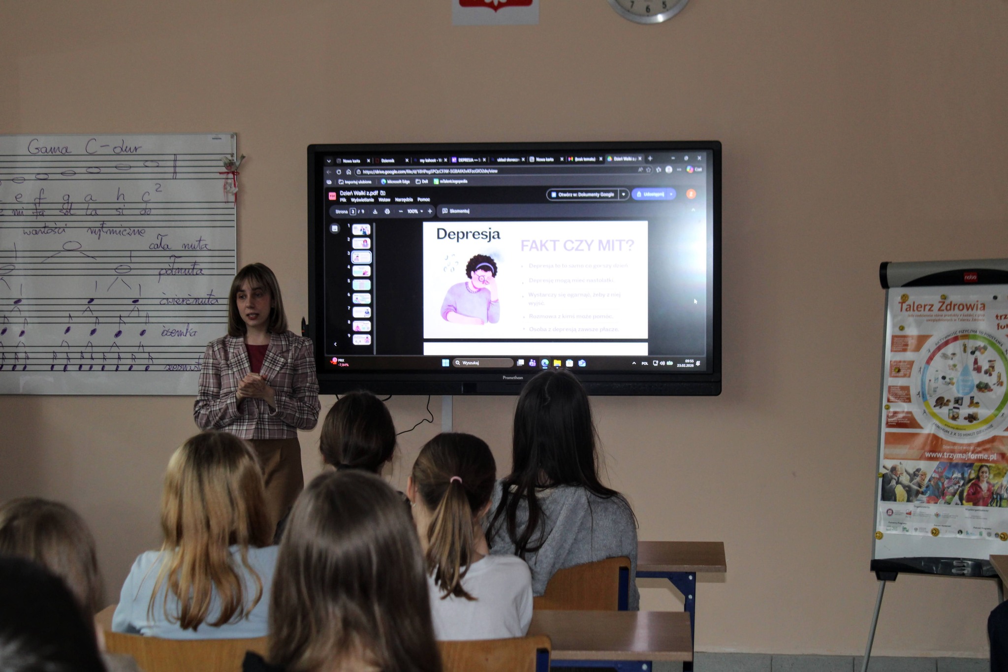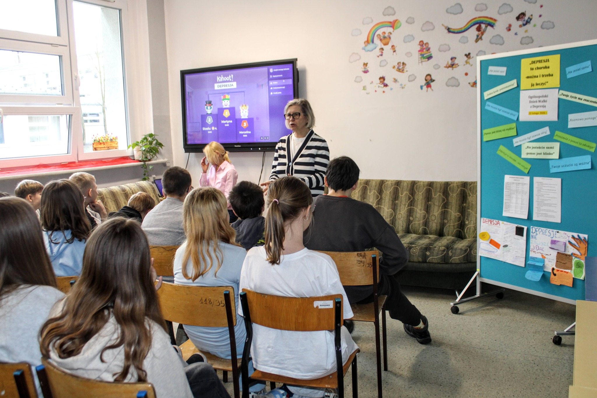 W jego ramach młodsze dzieci rozmawiały przede wszystkim o emochach. Starsze wysłuchały wykładu pani psycholog. Młodzież klas 5-8 obejrzała tematyczną prezentację. Zostałata także zaproszona do dyskusji. Rozmowy i liczne głosy udowodniły, że jest to ważny problem, o którym trzeba często rozmawiać, a na pewno nie wolno milczeć. Dzięki Panu Łukaszowi, bohaterowi audycji Profilaktyki TV "Łukasz móvie" uczniowie dowiedzieli się, że nie należy być obojętnym na cierpienie innych, ale też samemu wierzyć, że nie ma takiej sprawy, której wspólnie z drugim mądrym człowiekiem nie dałoby się rozwiązać.