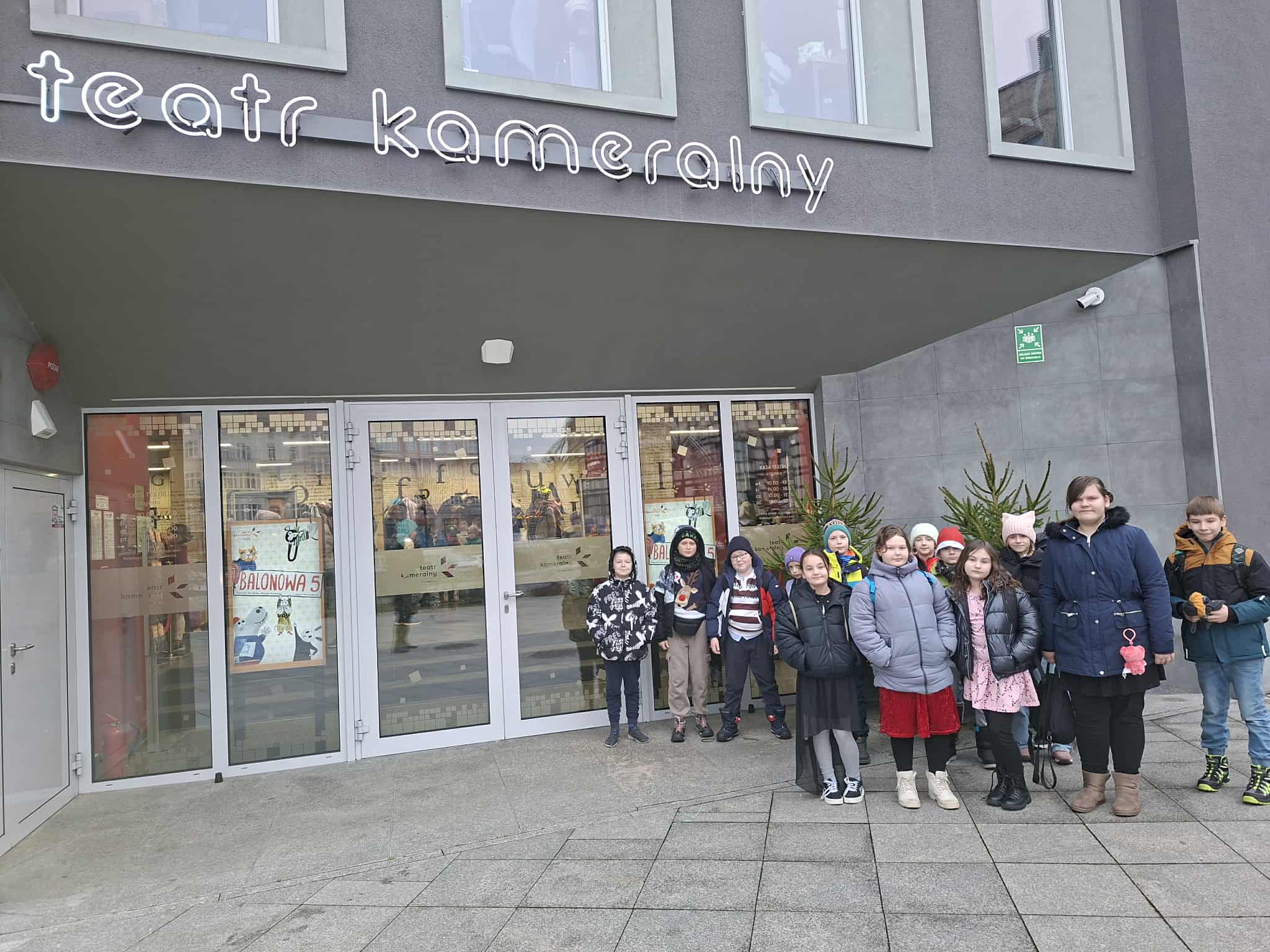 W przedmikołajkowy czwartek klasa 3 wraz z wychowawcą panią Hanną Kondek i nauczycielem współorganizującym kształcenie panią Joanną Madej w ramach ministerialnego programu finansowanego z budżetu państwa pod nazwą "Wyjście z klasą" wybrała się na spektakl "Balonowa 5" do Teatru Kameralnego.