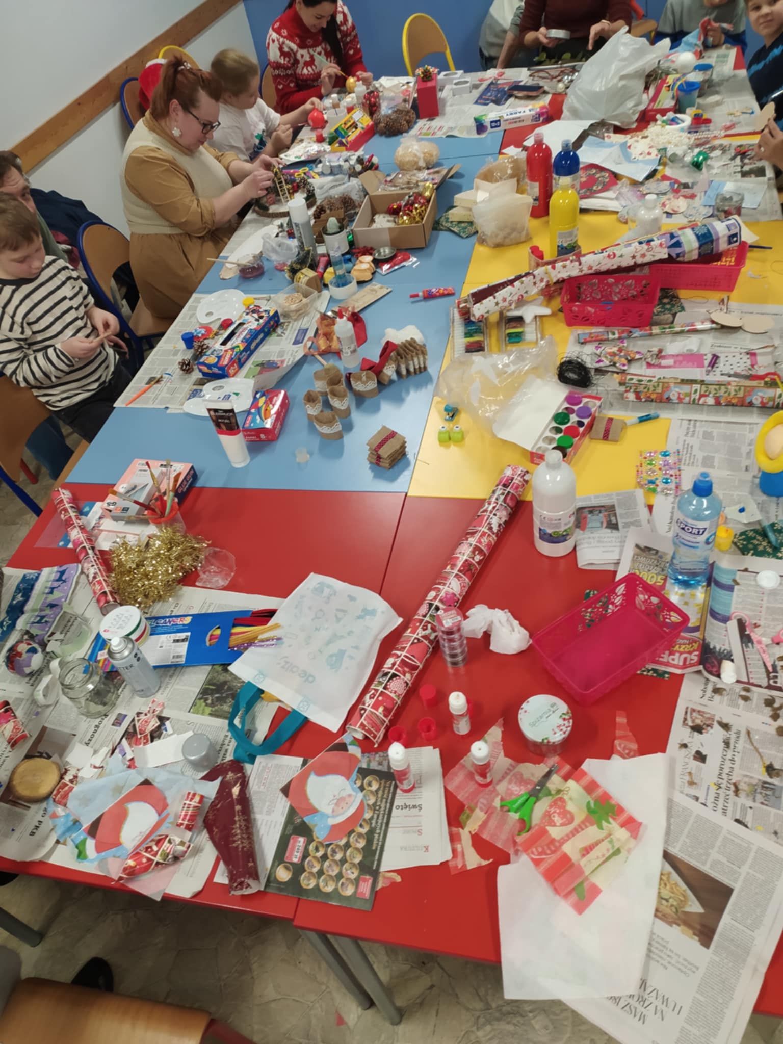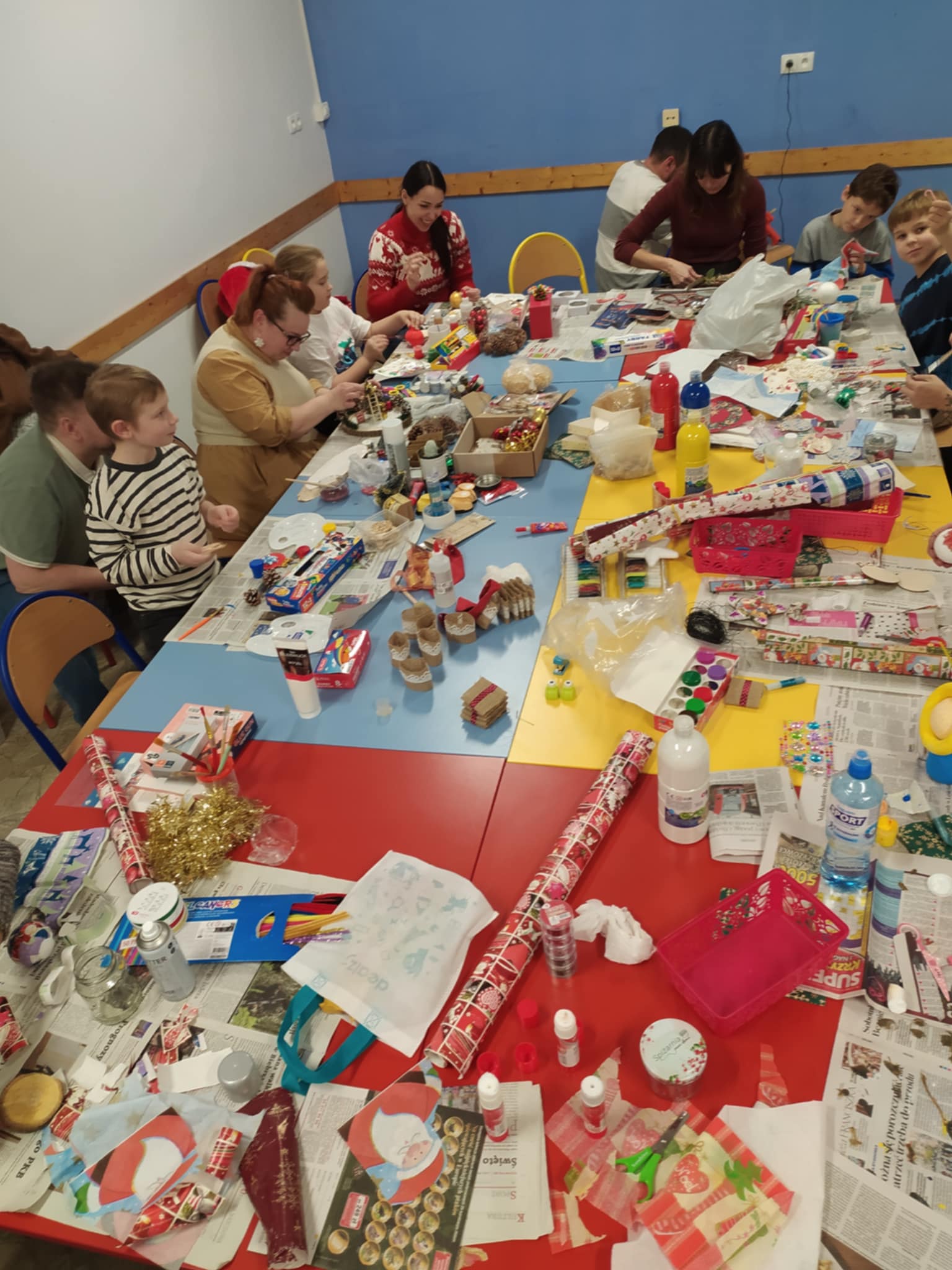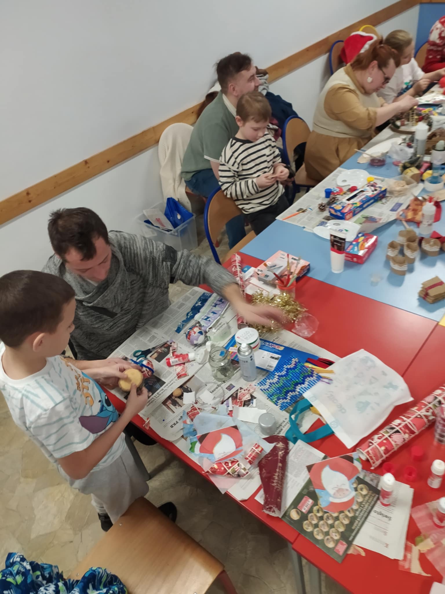 W dniu 20 listopada 2025r.z inicjatywy Pani Marzeny Budnik odbyły się warsztaty bożonarodzeniowe, które wprowadziły wszystkich w wyjątkowy, świąteczny nastrój. Uczniowie klasy drugiej wraz z rodzicami i wychowawczynią mieli okazję wspólnie tworzyć świąteczne dekoracje i stroiki, wykazując się dużą kreatywnością i pomysłowością. Rodzice aktywnie włączyli się w organizację wydarzenia – pomagali w przygotowaniach, wspierali dzieci podczas wykonywania dekoracji oraz dbali o miłą, serdeczną atmosferę. Dzięki zaangażowaniu warsztaty przebiegły sprawnie i radośnie. Nie zabrakło również pysznego poczęstunku, który został przygotowany dla dzieci. Przerwa przy słodkościach była doskonałą okazją do rozmów i chwil odpoczynku między kolejnymi etapami pracy. Podczas warsztatów powstały piękne, pomysłowe stroiki, które zostały przeznaczone na szkolny kiermasz świąteczny. Dzieci były dumne ze swoich prac, a wspólne tworzenie przyniosło im dużo satysfakcji i radości. Warsztaty były doskonałą okazją do integracji uczniów, rodziców i nauczyciela. Cudowny czas! Warto inicjatywę powtórzyć.