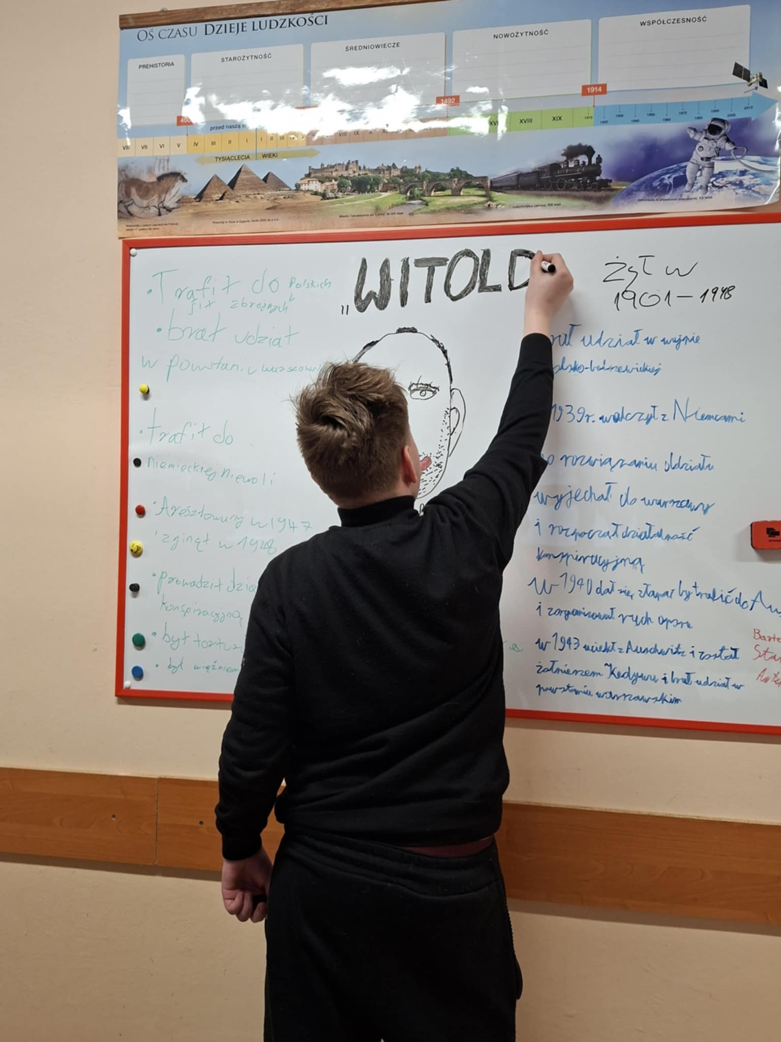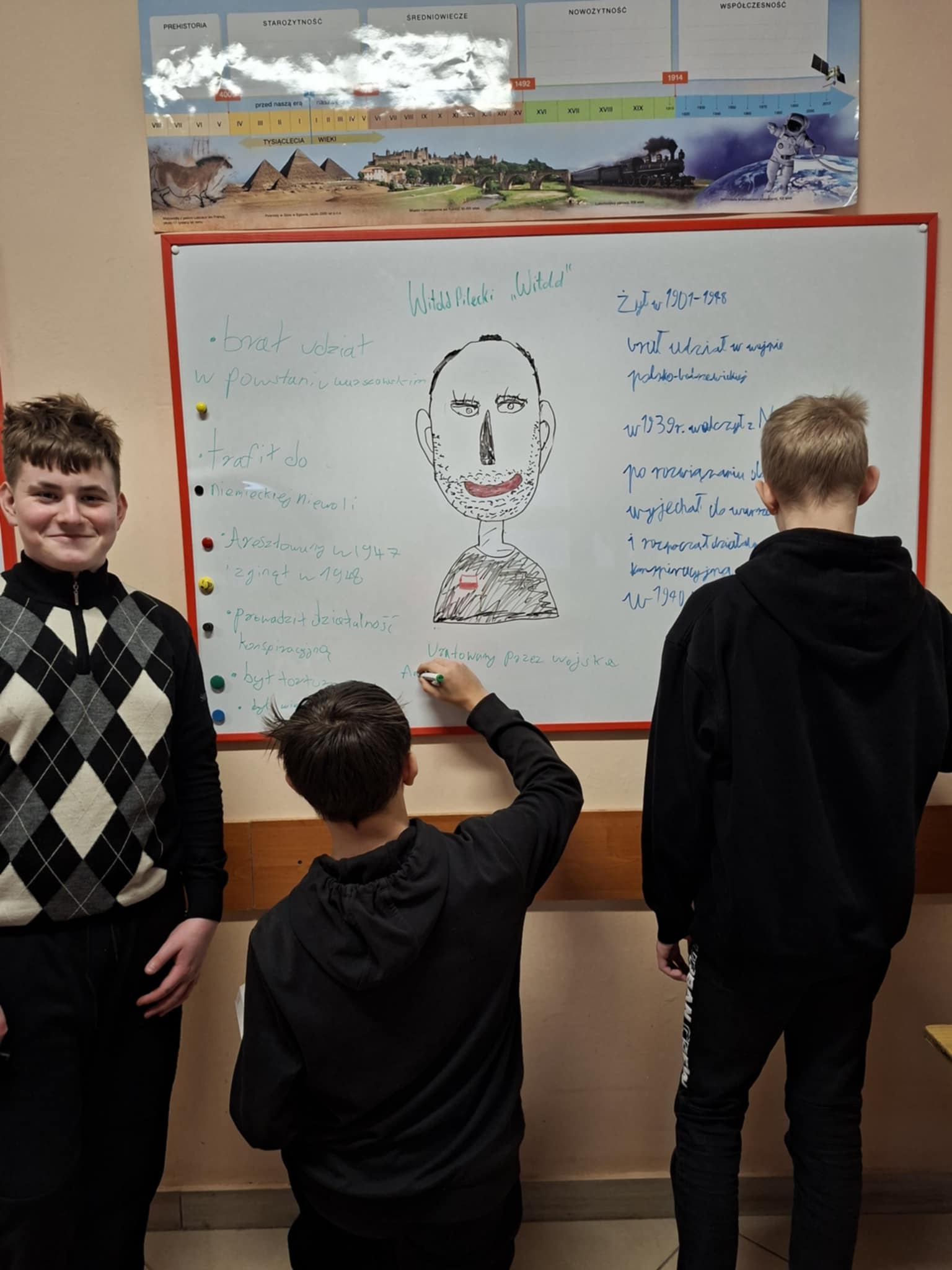 Niby zwykły dzień, zwykła lekcja historii, a jednak.... Uczniów klasy VIII poruszyły losy Witolda Pileckiego i Danuty Siedzikówny. Bardzo się zaangażowali. Wykazali się wieloma umiejętnościami, między innymi: organizacyjnymi, pracy w grupie, korzystania ze źródeł, a nawet artystycznymi! W naszej szkole uczy się piękna, mądra młodzież. Kocha Ojczyznę, szanuje jej przeszłość, podziwia Bohaterów... Jesteśmy z Nich bardzo dumni!